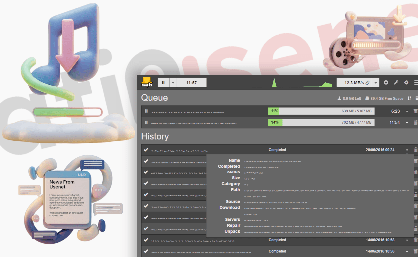 Hoy en día, Usenet es una red distribuida de servidores con una gran cantidad de grupos de discusión de todos los temas y una gran cantidad de archivos binarios para descarga.